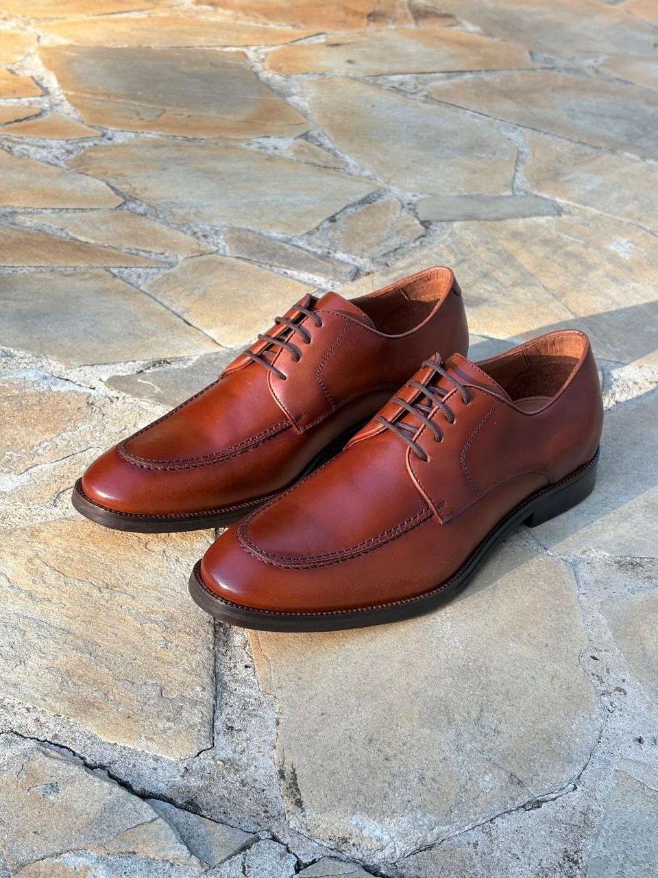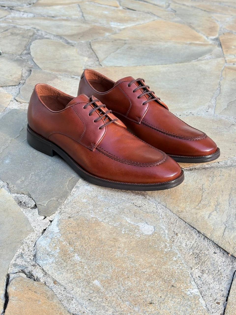 O solado é feito em couro, garantindo durabilidade, conforto e aquele toque tradicional característico dos calçados clássicos de alfaiataria. O design conta com cadarço fino, bico levemente arredondado e linhas limpas que transmitem discrição e estilo atemporal.